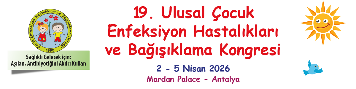 02 - 05 Nisan 2026 tarihleri arasında Mardan Palace Antalya'da gerçekleştirilecek olan "19. Ulusal Çocuk Enfeksiyon Hastalıkları ve Bağışıklama Kongresi” ile ilgili olarak, aşağıda detayları verilmiş olan sunumumun;